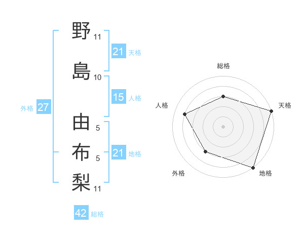野島 由布梨さんを姓名の画数から五運を鑑定