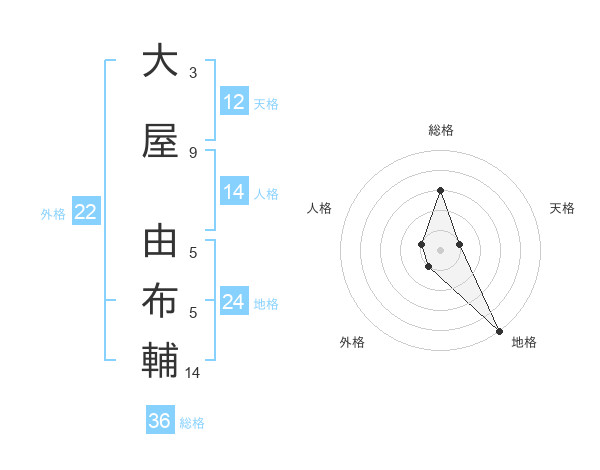 大屋 由布輔さんを姓名の画数から五運を鑑定