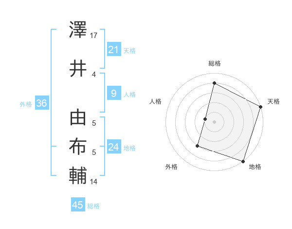 澤井 由布輔さんの総格は45画の4点!
