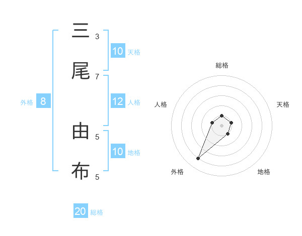 三尾 由布さんの外格は8画の4点