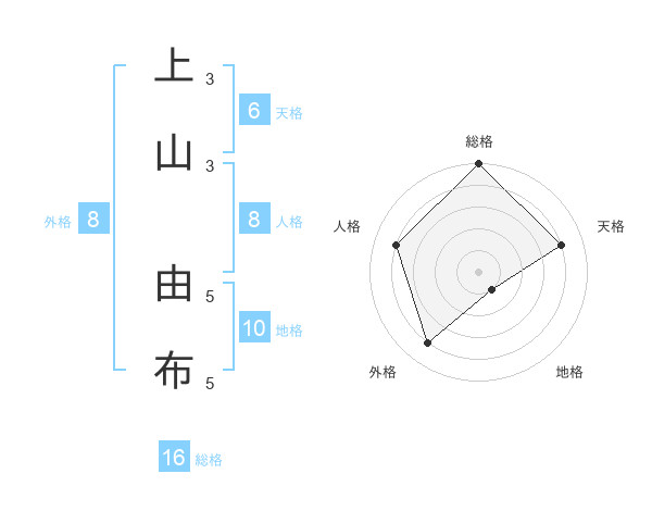上山 由布さんの総格は16画の5点!