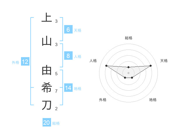 上山 由希刀さんを姓名の画数から五運を鑑定