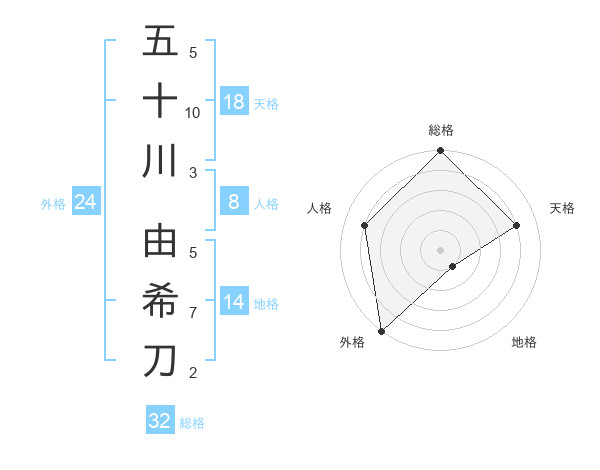 五十川 由希刀さんを姓名の画数から五運を鑑定