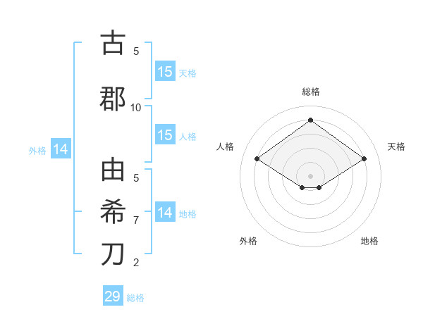 古郡 由希刀さんの総格は29画の4点!