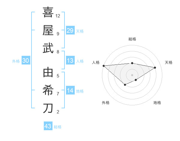 喜屋武 由希刀さんを姓名の画数から五運を鑑定