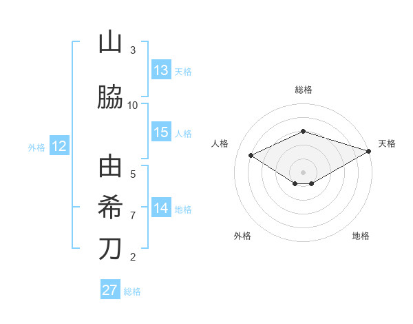 山脇 由希刀さんの天格は13画の5点