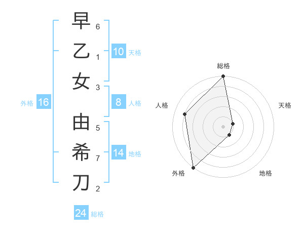 早乙女 由希刀さんを姓名の画数から五運を鑑定