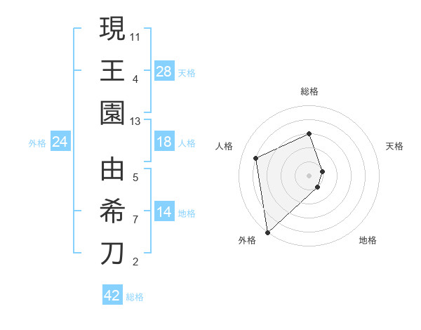 現王園 由希刀さんを姓名の画数から五運を鑑定