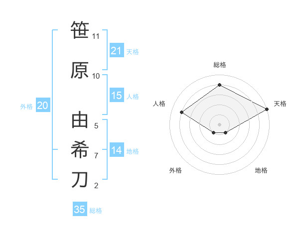 笹原 由希刀さんを姓名の画数から五運を鑑定