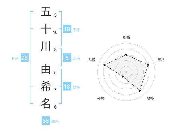 五十川 由希名さんの天格は18画の4点!