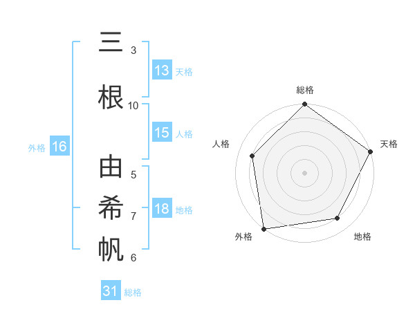 三根 由希帆さんを姓名の画数から五運を鑑定