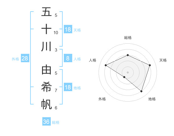 五十川 由希帆さんを姓名の画数から五運を鑑定