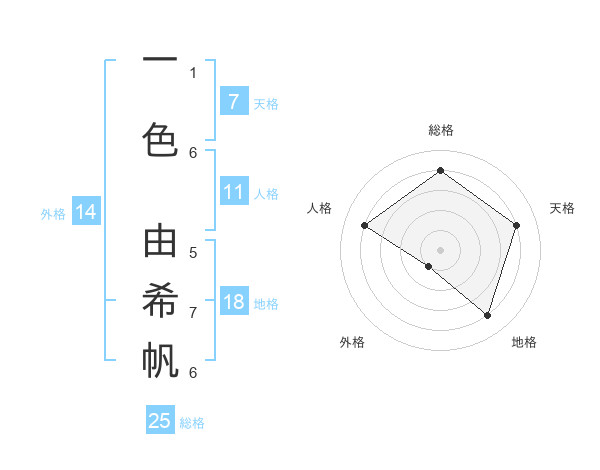 一色 由希帆さんの総格は25画の4点