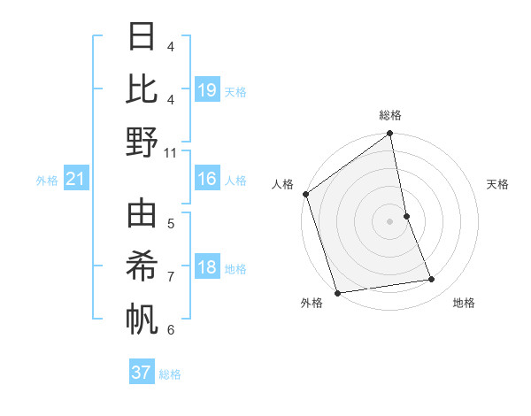 日比野 由希帆さんを姓名の画数から五運を鑑定