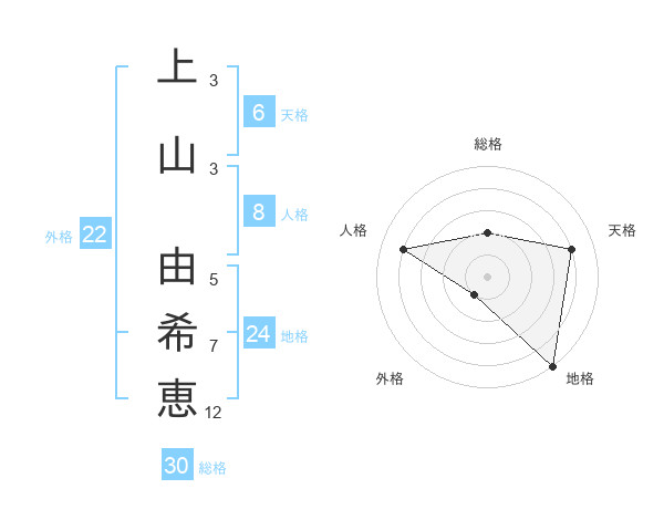 上山 由希恵さんを姓名の画数から五運を鑑定