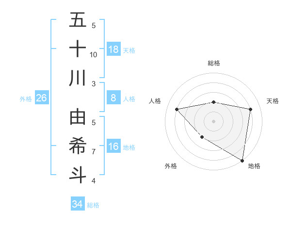 五十川 由希斗さんを姓名の画数から五運を鑑定
