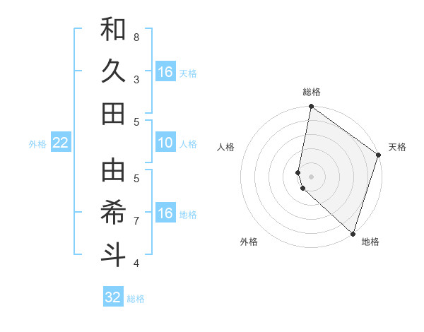 和久田 由希斗さんを姓名の画数から五運を鑑定