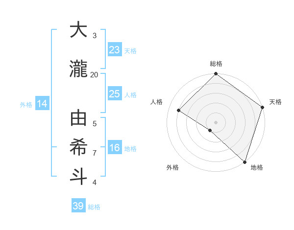大瀧 由希斗さんを姓名の画数から五運を鑑定