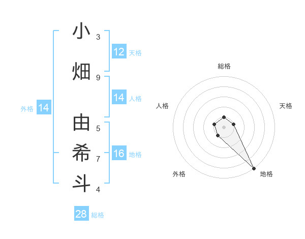 小畑 由希斗さんの天格は12画の1点!