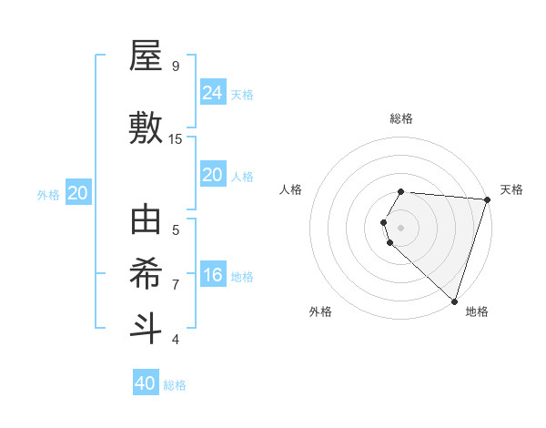 屋敷 由希斗さんを姓名の画数から五運を鑑定