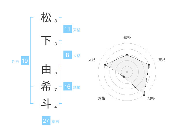 松下 由希斗さんを姓名の画数から五運を鑑定