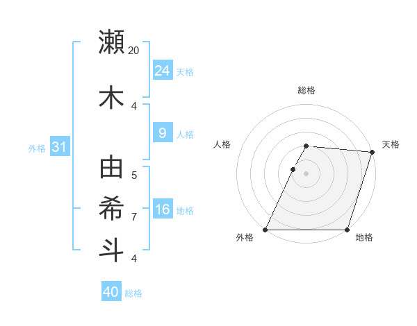 瀬木 由希斗さんの天格は24画の5点!