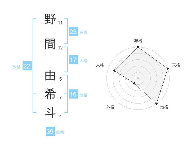 野間 由希斗さんを姓名の画数から五運を鑑定