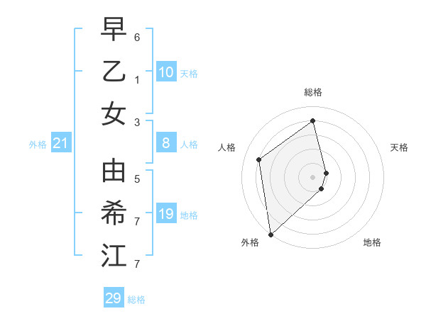 早乙女 由希江さんを姓名の画数から五運を鑑定