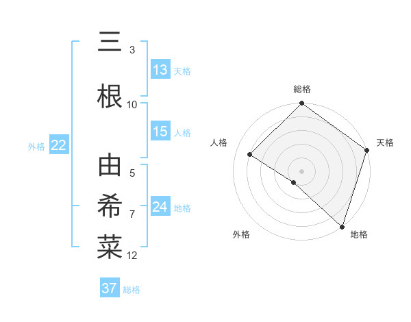 三根 由希菜さんを姓名の画数から五運を鑑定
