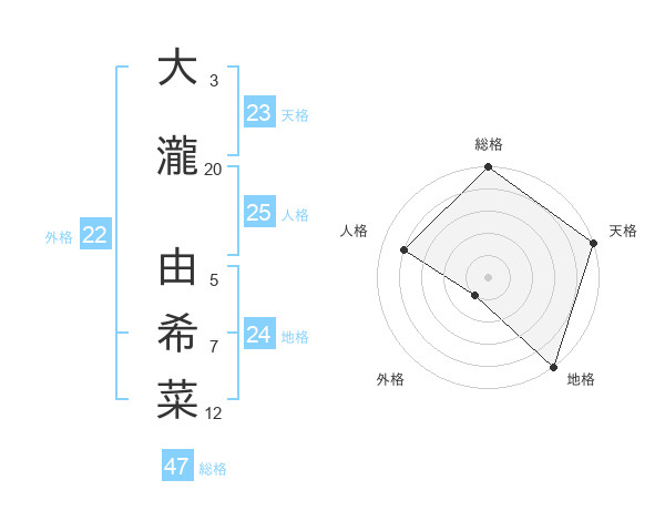 大瀧 由希菜さんを姓名の画数から五運を鑑定