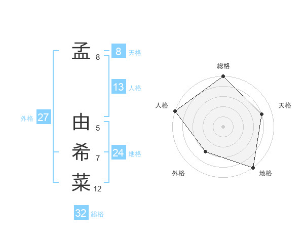 孟 由希菜さんを姓名の画数から五運を鑑定