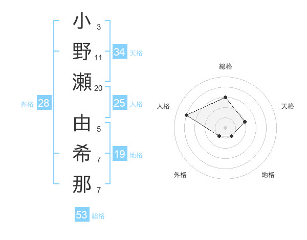 小野瀬 由希那さんを姓名の画数から五運を鑑定
