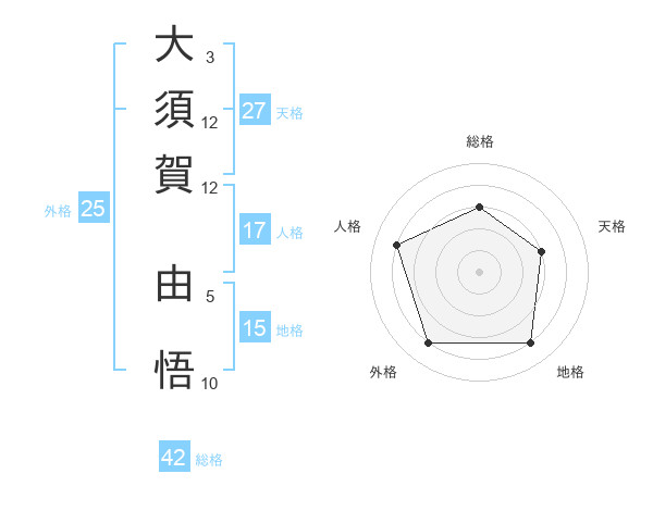大須賀 由悟さんの総格は42画の3点!