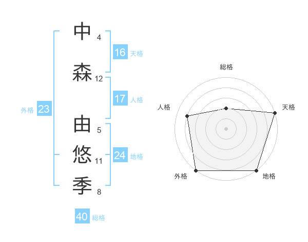 中森 由悠季さんを姓名の画数から五運を鑑定