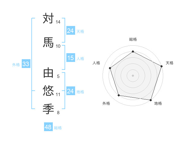 対馬 由悠季さんを姓名の画数から五運を鑑定