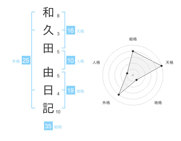 和久田 由日記さんを姓名の画数から五運を鑑定
