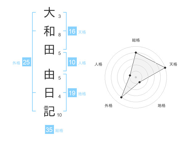 大和田 由日記さんを姓名の画数から五運を鑑定