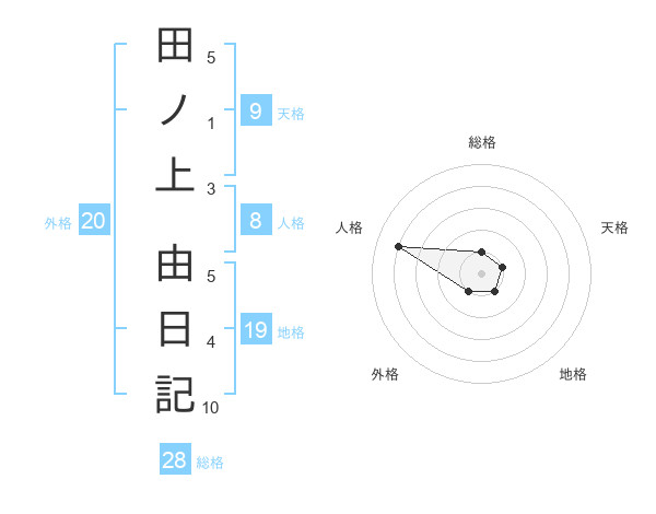 田ノ上 由日記さんの総格は28画の1点!