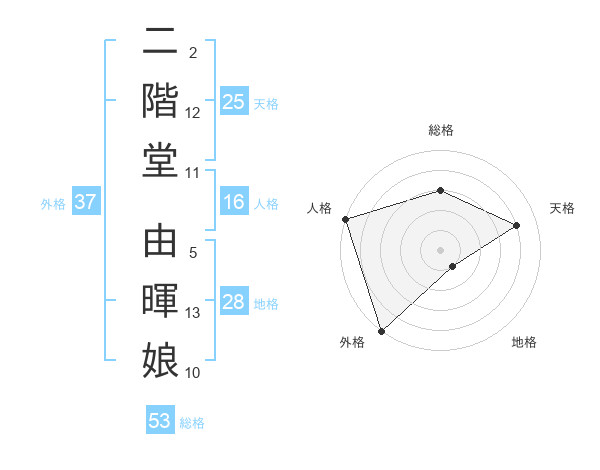 二階堂 由暉娘さんを姓名の画数から五運を鑑定