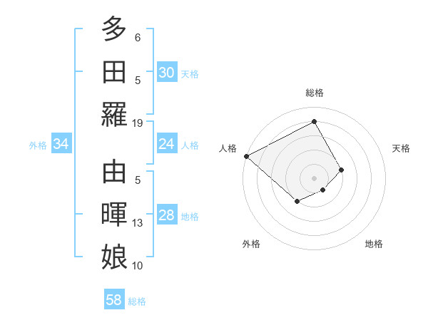 多田羅 由暉娘さんを姓名の画数から五運を鑑定