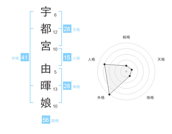宇都宮 由暉娘さんを姓名の画数から五運を鑑定