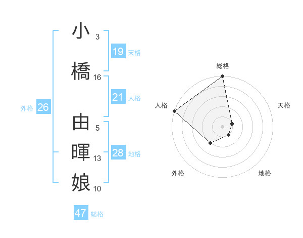 小橋 由暉娘さんを姓名の画数から五運を鑑定