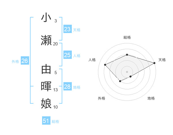 小瀬 由暉娘さんの総格は51画の3点!