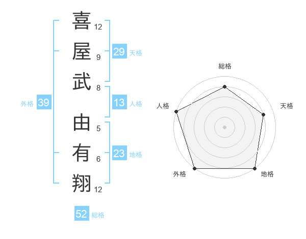 喜屋武 由有翔さんを姓名の画数から五運を鑑定