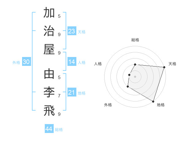 加治屋 由李飛さんを姓名の画数から五運を鑑定