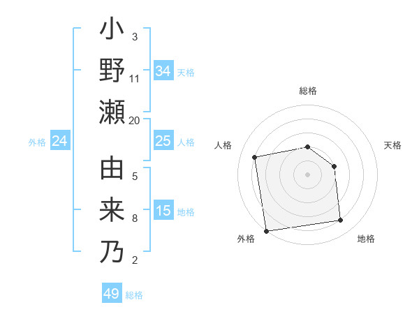 小野瀬 由来乃さんを姓名の画数から五運を鑑定