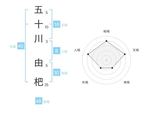 五十川 由杷さんを姓名の画数から五運を鑑定