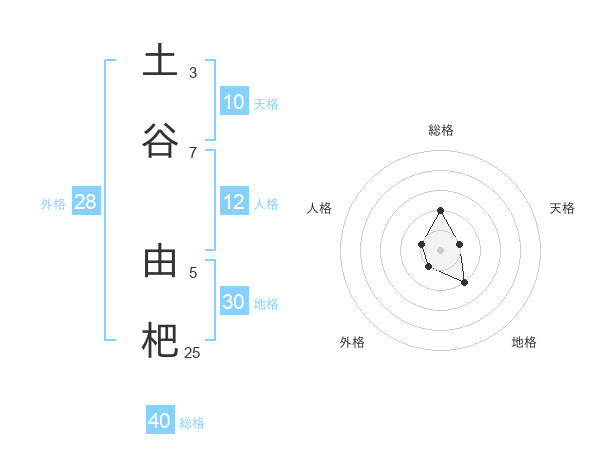 土谷 由杷さんを姓名の画数から五運を鑑定