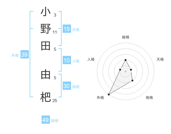 小野田 由杷さんの外格は39画の5点!