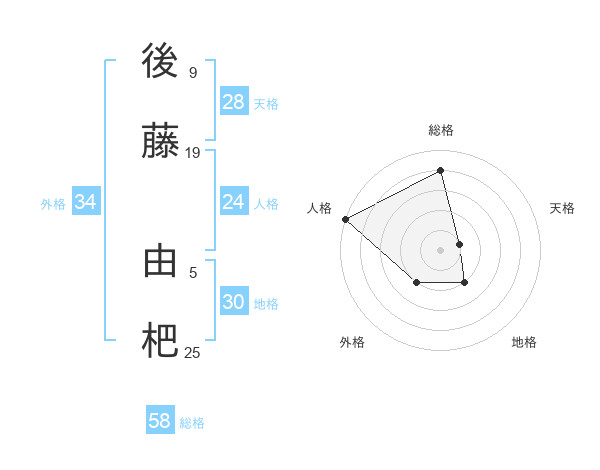 後藤 由杷さんの総格は58画の4点!